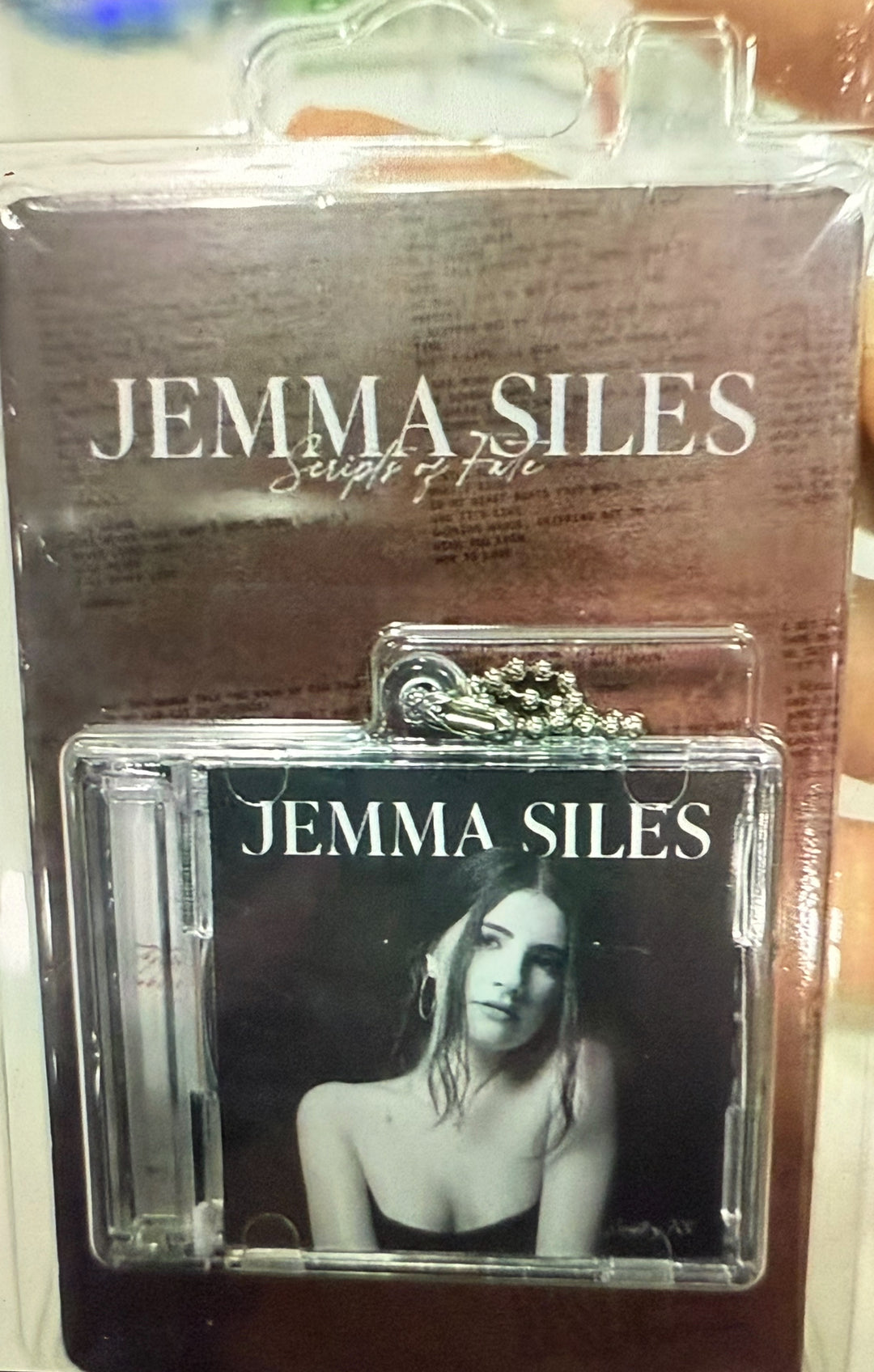 This mini Jewel CD keychain is a replica of the Jemma Siles Scripts of Fate debut CD, it opens like a Jewel CD and has NFC tapping on it so you're able to tap straight to play scripts of fate on spotify from wherever you are!